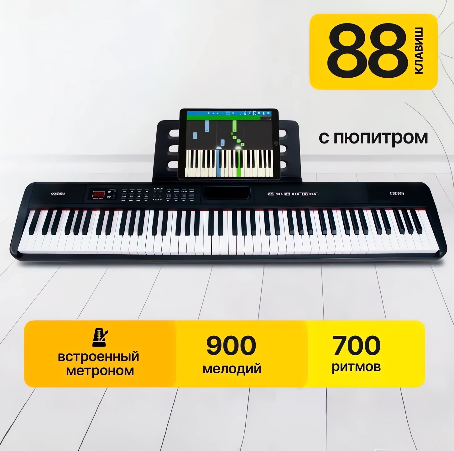 Вечная классика в универсальном дизайне. Ультрасовременное пианино: Пианино-синтезатор на матовых противоскользящих рояльных клавишах, для начинающих и профи, с функцией обучения (900 встроенных мелодий), подключаемыми наушниками для тихой игры, встроенными динамиками.
